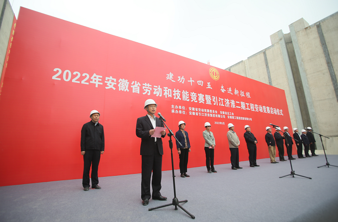 5月11日上午,由安徽省勞動競賽委員會、安徽省總工會主辦,安徽建工集團控股有限公司、安徽省引江濟淮集團有限公司承辦的2022年安徽省勞動和技能競賽暨引江濟淮二期工程勞動競賽啟動儀式在安徽省路港工程有限責任公司承建的引江濟淮工程派河口船閘項目現場舉行。