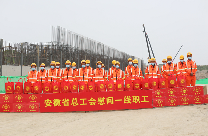 啟動儀式后,宋國權一行還看望慰問了建設工地一線職工,為他們送上慰問品。宋國權強調,引江濟淮工程是國家重大水利工程,也是安徽基礎設施建設一號工程。希望廣大職工弘揚勞模精神、勞動精神、工匠精神,利用勞動競賽的廣闊平臺,以賽促訓、以賽促建,為工程項目的安全高效建設貢獻智慧和力量;勤學苦練、深入鉆研,不斷提升技術技能水平,努力成為行家里手、業務好手。