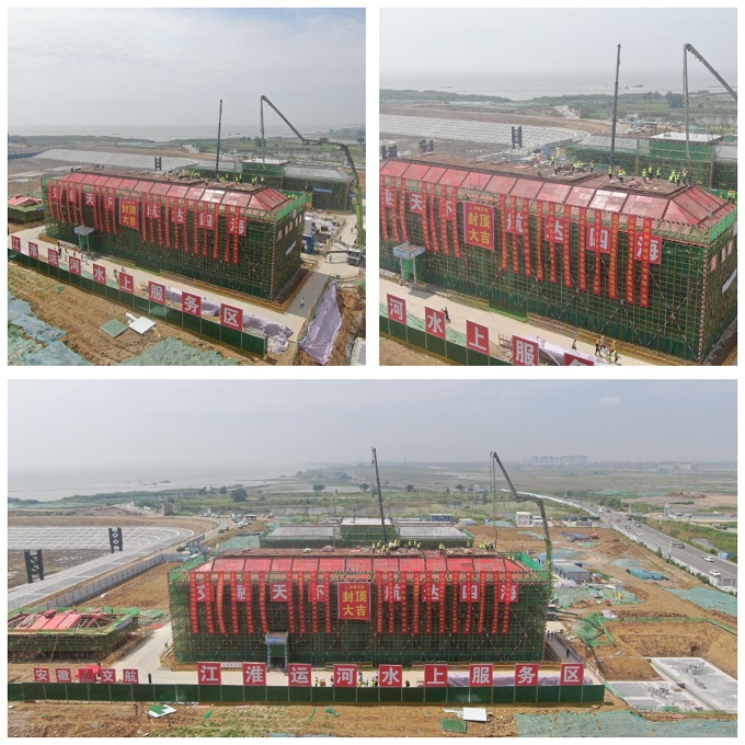 6月2日上午9:58,隨著派河口服務(wù)區(qū)工程生活服務(wù)中心迎來封頂,正式宣告了引江濟(jì)淮項(xiàng)目派河口服務(wù)區(qū)工程房建主體結(jié)構(gòu)實(shí)現(xiàn)全部封頂目標(biāo),比原定計劃工期提前28天完成業(yè)主下達(dá)的節(jié)點(diǎn)目標(biāo),項(xiàng)目建設(shè)取得階段性勝利。