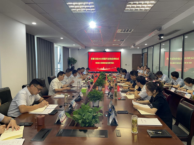 9月5日上午,安徽交航公司在19樓1918會議室舉行2022年“質量月”活動啟動儀式。公司黨委書記、董事長方申柱出席儀式并講話,黨委副書記、總經理杜海峰作具體工作部署。黨委委員、副總經理、總工程師張瓊主持儀式并作動員講話。