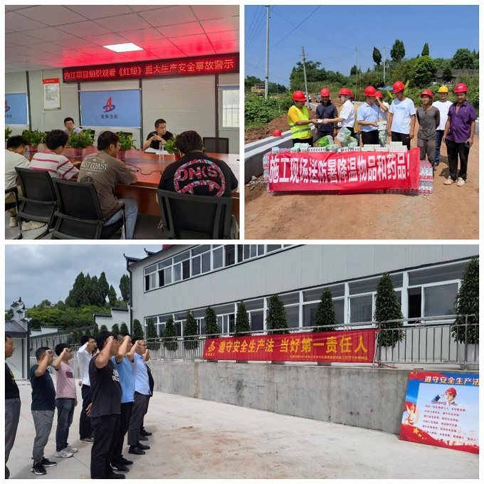 加強安全管理,增強安全意識。項目部全面落實安全生產責任制度,嚴格實行領導帶班制度,加強生產過程中安全隱患排查工作,截至目前項目未發生安全事故。依據項目制定的安全檢查制度,開展了日常巡查、定期檢查、專項巡查、節前專項檢查及節后復工專項檢查等。今年以來項目部累計開展安全進場教育145人次;安全技術交底25次;共下發37份安全隱患整改通知單,完成86條安全隱患的整改工作;開展“安全警示日”、“安全生產月”、“防災減災”等專題教育以及系列活動。項目部調整施工時間錯開高溫時間段,在施工現場配備綠豆、防暑降溫藥品,采取一系列措施預防工人中暑,有效應對夏季高溫天氣。
