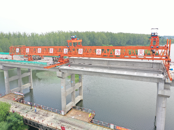 為確保架梁工作順利進(jìn)行,項目部在每榀箱梁提、運(yùn)、架作業(yè)前,堅持“一吊一檢”,通過檢查電機(jī)等有無異常聲音和異常現(xiàn)象,進(jìn)行液壓、起吊系統(tǒng)和制動設(shè)備等20多項專項檢查,杜絕機(jī)器帶病作業(yè)的現(xiàn)象。箱梁架設(shè)中,專職安全員全過程盯控,嚴(yán)禁架設(shè)過程出現(xiàn)“三違”作業(yè)。與此同時,架梁隊伍嚴(yán)格遵守事前、事中、事后各階段的安全規(guī)程和安全防護(hù)措施,保障了設(shè)備及人身安全以及整個架設(shè)過程的安全性。