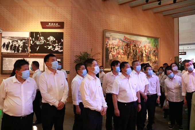 為慶祝中國共產黨成立100周年,貫徹落實黨史學習教育工作要求,5月11日下午,安徽交航機關黨支部、引江濟淮項目黨支部、聯合開展黨史學習教育主題黨日活動。公司領導班子成員,機關全體黨員、引江濟淮項目全體黨員以及職工群眾共120余人前往渡江戰役紀念館,重溫入黨誓詞,緬懷革命先烈豐功偉績,聆聽黨委書記、董事長、總經理方申柱講黨課。