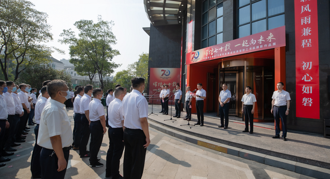 劉家靜在講話中,代表集團(tuán)黨委,向本次展覽的成功舉辦表示熱烈的祝賀,向參與過(guò)、付出過(guò)、見(jiàn)證過(guò)安徽建工70年發(fā)展的廣大干部職工及其家屬致以崇高的敬意。他指出,70年來(lái),集團(tuán)緊跟時(shí)代步伐、搶抓戰(zhàn)略機(jī)遇,走出了一條規(guī)模逐年增長(zhǎng)、效益穩(wěn)步提升、結(jié)構(gòu)不斷優(yōu)化、實(shí)力顯著增強(qiáng)的發(fā)展新路。他強(qiáng)調(diào),站在集團(tuán)70年發(fā)展新的歷史方位上,全體職工要錨定千億、智慧、綠色、幸福“四個(gè)安徽建工”的奮斗目標(biāo),不忘初心、牢記使命,踔厲奮發(fā)、勇毅前行,為加快建設(shè)現(xiàn)代化美好安徽作出新的更大貢獻(xiàn),以實(shí)際行動(dòng)和優(yōu)異成績(jī)迎接黨的二十大勝利召開(kāi)。