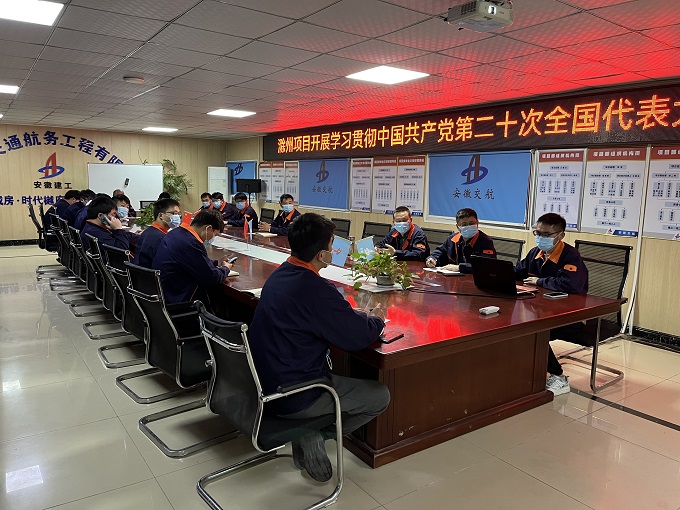 10月27日,滁州項目黨支部組織項目全體人員在會議室召開學習宣貫中國共產黨第二十次全國代表大會精神專題會議,項目經理王德生主持會議。