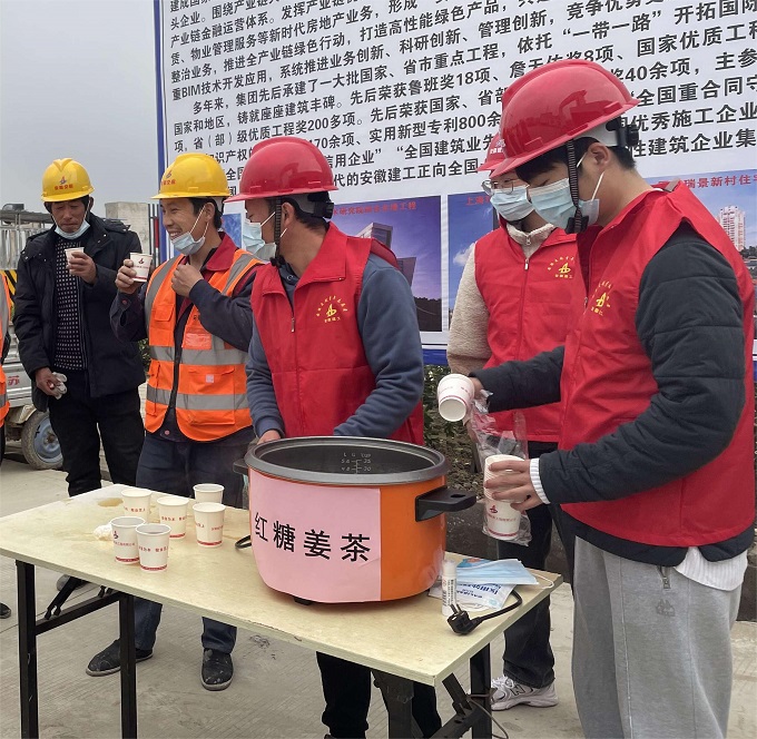 寒冬將至,為了提高現場工人工作積極性,鼓足干勁,全力推進施工建設進程。項目志愿者在施工現場為工作人員免費提供紅糖姜茶,將一杯杯熱氣騰騰的姜茶送到施工人員手中,為他們驅寒送暖,并叮囑他們在工作中注意防寒保暖。