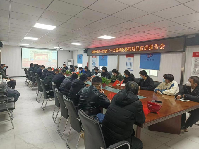 12月30日上午,安徽交航公司黨委副書記、工會主席黃國平赴瑤海區(qū)板橋河項目部開展黨的二十大精神專題宣講。