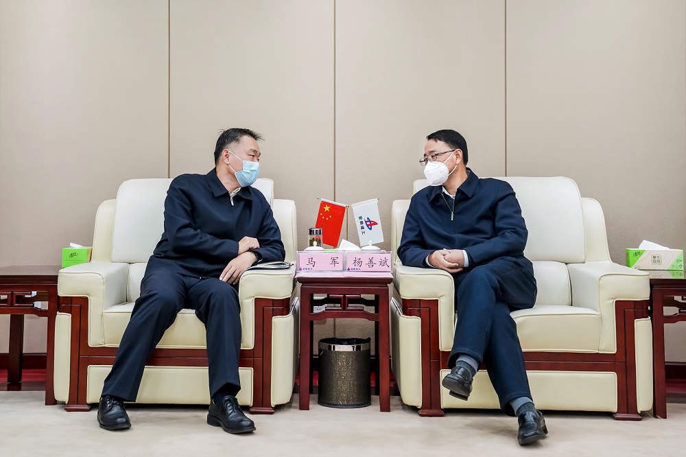1月17日上午,安徽建工集團黨委書記、董事長楊善斌在安建國際大廈與蚌埠市委副書記、市長馬軍舉行工作會談。