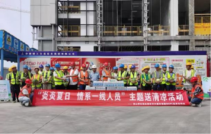 為貫徹落實公司及黃山市住建局有關安全工作要求,切實做好高溫天氣施工防暑降溫工作。近日,黃山世紀園總部經濟大廈項目部組織開展“炎炎夏日 情系一線人員”送清涼活動,為現場作業人員發放毛巾、鹽汽水、風油精、清涼油等防暑降溫物資。