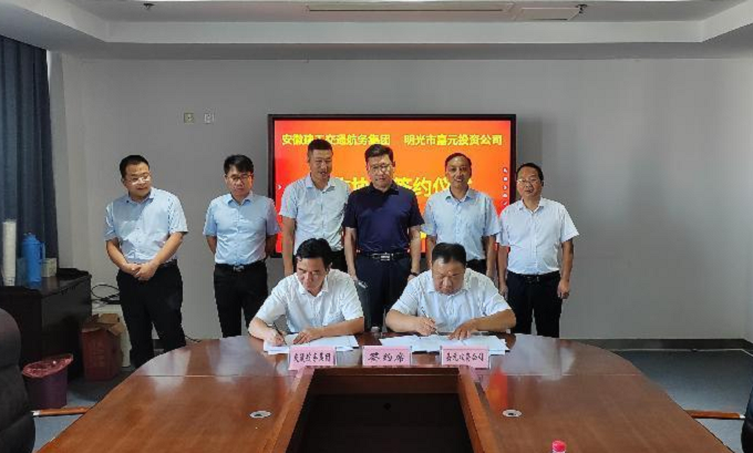 明光市財政局黨組書記吳文良,嘉元投資公司董事長、總經理湯仁民,副總經理朱三根,建工交航經營公司、第三工程公司有關負責同志參加簽約儀式。
