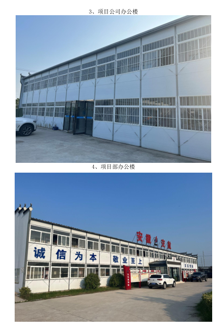 項目部現有單層活動板房51間(6.16米*3.64米*48間,6.16米*5.46米*2間,6.16米*14.56米*1間),雙層活動板房4排56間(6.16米*3.64米*53間,6.16米*7.28米*3間),總建筑面積約5193㎡;場地硬化總面積約10014㎡(其中15cm厚度約4470.25㎡,10cm厚度約5543.76㎡);其余綠化等附屬詳見拆除清單。