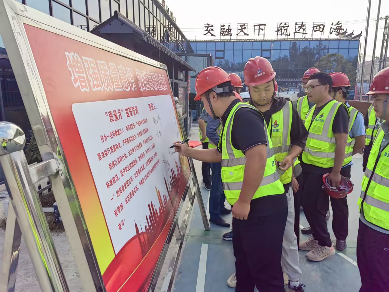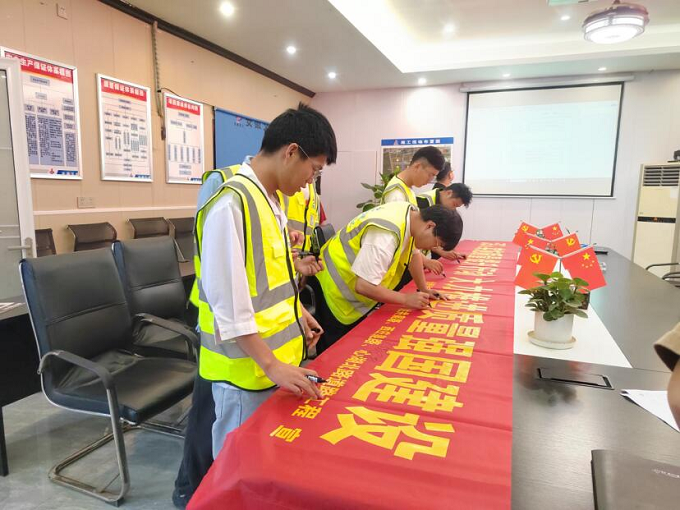 徐淮阜宿州段高速路基02標、蕭楊路項目、譚沖河家園項目部開展質量月宣誓活動。