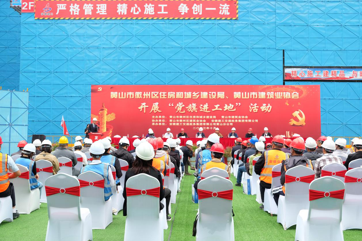 為扎實推進黨建與項目建設深度融合,充分發揮黨建引領作用。10月13日,建工交航徽州區城東糧食倉儲物流產業園項目作為市建筑協會、徽州區住建局選定項目,順利承辦“黨旗進工地”活動。黃山市工商聯機關黨委書記、二級調研員張玉明,市建管處安全辦負責人石銳,徽州區住建局黨組成員、質監站站長朱仁德,徽州區城投公司總經理潘立軍,市建筑業協會黨支部書記、秘書長程文華,徽州區建筑業協會會長李蘇云等領導出席活動。