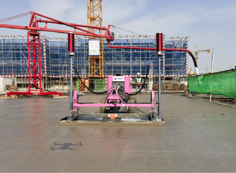 混凝土智能機器人具有“高效率、高精度”的特點,在混凝土澆筑后,通過智能激光找平算法及線控底盤技術對地面進行振搗及高精度找平施工,在混凝土初凝后,對地面進行提漿、打磨、收面施工,極大提高了混凝土施工質量、觀感及平整度控制,有效提升了施工效率及施工質量。