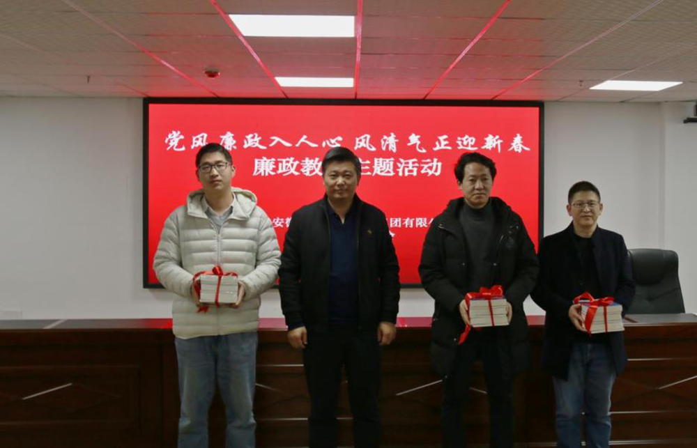 公司黨委副書記、總經理李登祥向機關三個支部贈送廉政書籍《國有企業反腐警示錄》《國有企業廉潔從業實用手冊》,并寄語每位黨員要不斷學習,堅持從嚴修身律己、筑牢廉潔防線,做到自重、自省、自警、自勵,為公司營造風清氣正的工作氛圍。