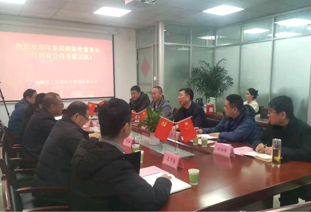 1月19日上午,合肥印象濱湖旅游投資發展有限公司董事長陳俊一行赴公司考察洽談。建工交航黨委書記、董事長徐少華熱情接待并召開座談會。