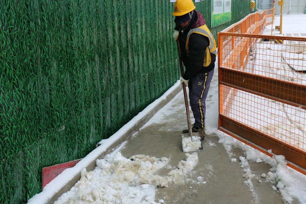 再次面對寒潮,商機廠租賃住房項目第一時間組織人員清理辦公區、生活區、施工現場道路的積雪,鋪設防滑草袋,確保惡劣天氣條件下項目各工作安全有序推進。