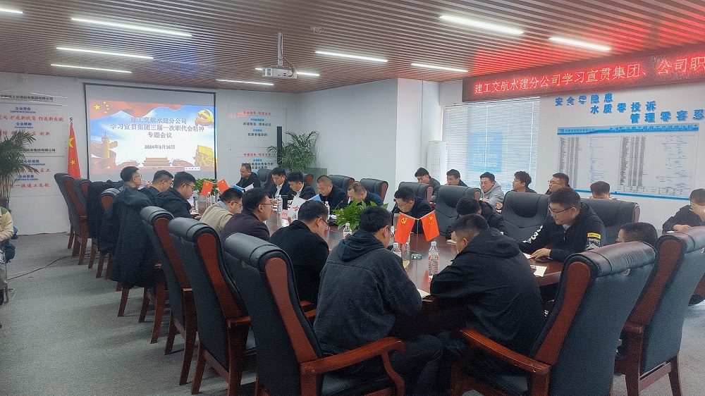 3月16日,建工交航水建分公司在七水廠三期工程項目部組織召開學習宣貫集團、公司兩級職代會及建工交航第一次黨代會精神專題會議。