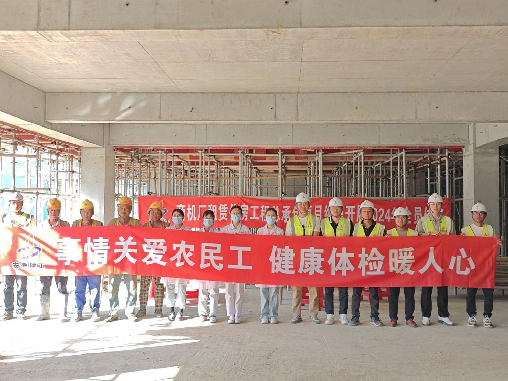 為落實安全生產工作要求,切實保障一線工人的身體健康,5月17日下午,商機廠租賃住房項目部開展了以“事情關愛農民工,健康體檢暖人心”為主題的體檢活動,邀請醫護人員走進工地,為現場工人進行一次全面、免費的健康檢查,用實際行動傳遞溫暖。