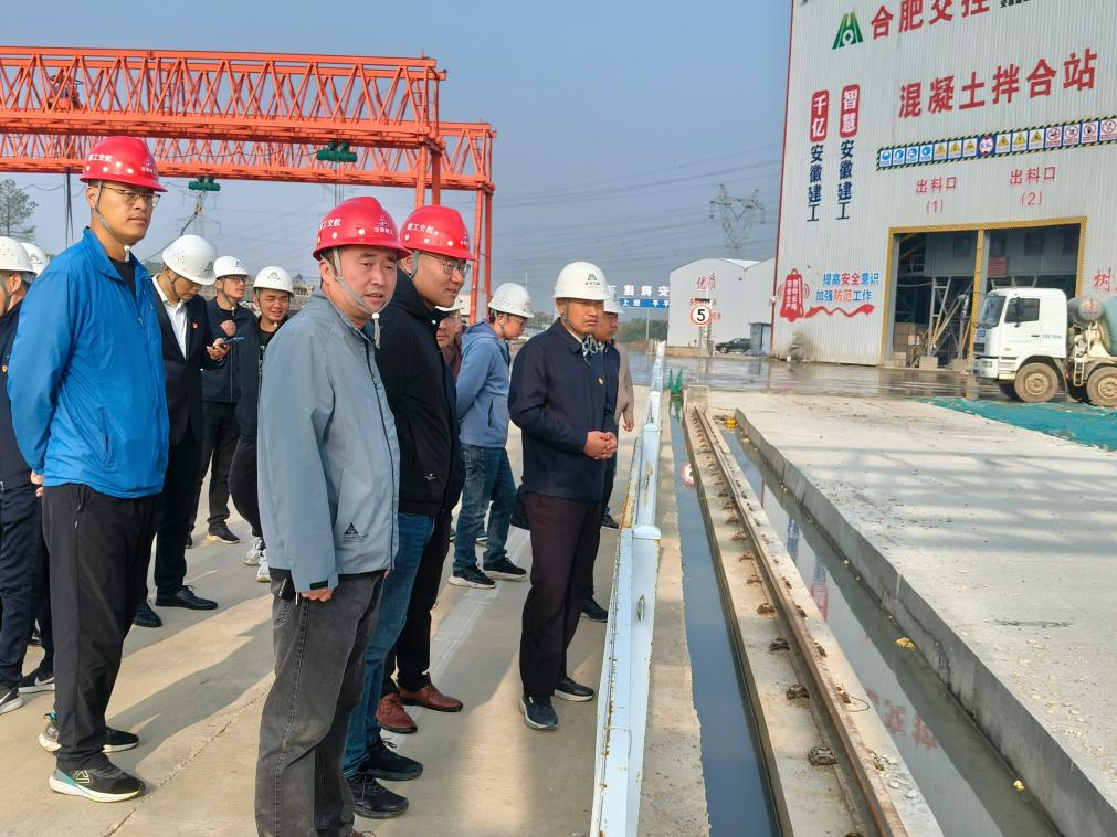 在S18寧合高速4標項目,合肥交投合寧高速公路有限公司黨支部書記黃華一行參觀了拌和站、預(yù)制梁場,詳細了解了項目概況、生產(chǎn)進度和重難點工作。S18寧合高速項目黨支部書記、項目經(jīng)理肖昌樹就梁場布局、施工現(xiàn)狀、節(jié)點計劃、機械設(shè)備及近期工作安排進行業(yè)務(wù)匯報,他指出推進“黨建進工地”,是新時代加強基層黨建工作,推動工程項目高質(zhì)量發(fā)展的重要舉措,將黨建工作深入融入工程建設(shè)工作中,不僅能提升項目管理的科學(xué)化水平,更能激發(fā)廣大黨員職工的工作熱情和創(chuàng)造力,為項目工程建設(shè)注入強大動力。