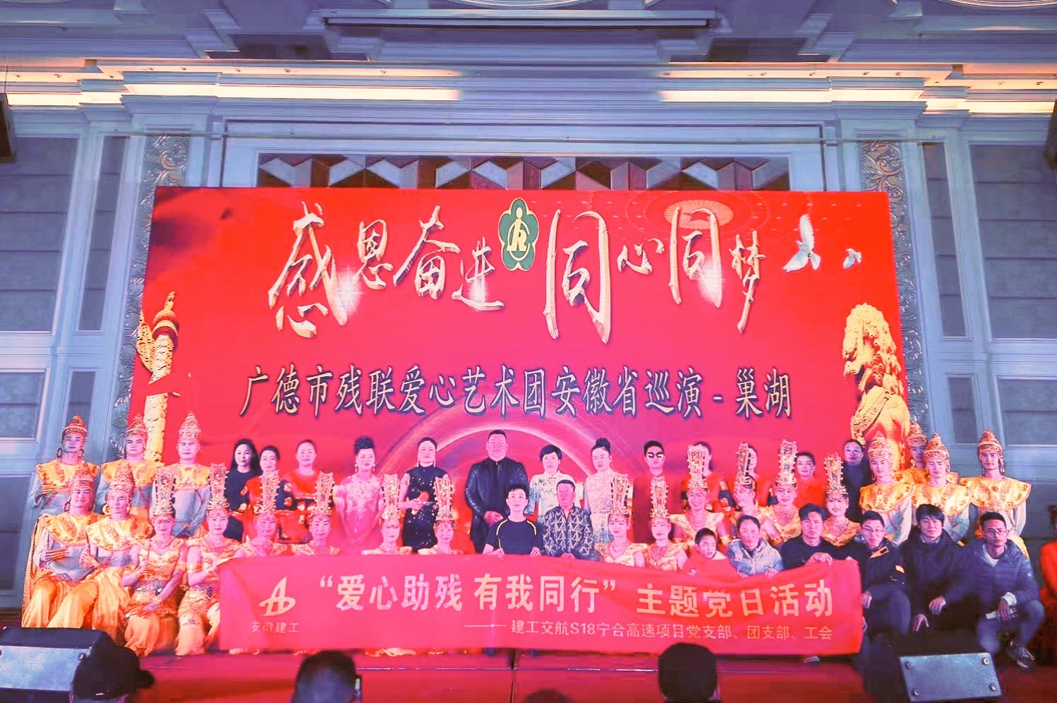 為進一步弘揚中華民族扶弱助殘的傳統(tǒng)美德,營造關心幫助殘疾人等特殊群體的良好氛圍,12月14日S18寧合高速項目黨支部開展“愛心助殘 有我同行”主題黨日活動,組織全體黨員集中觀看廣德市殘聯(lián)愛心藝術團的演出。