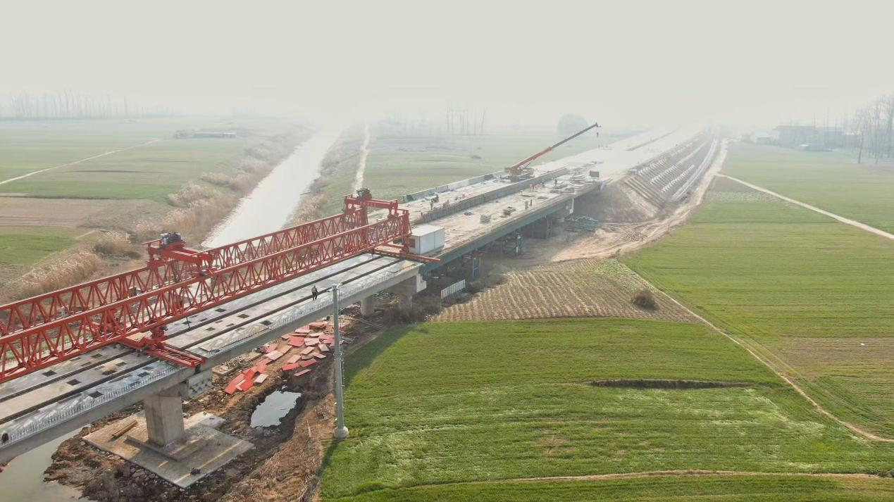 12月25日,歷經6天艱苦奮斗,隨著架橋機精準無誤地移位并圓滿完成落梁作業,徐淮阜高速項目迎來了振奮人心的里程碑時刻——徐淮阜高速湘西河大橋右幅順利貫通,完成全線貫通的重大突破。