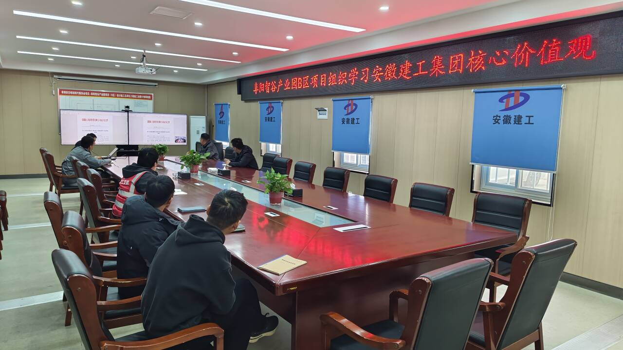 阜陽智谷產業園項目召開專題會議,集中學習了集團下發的《關于開展安徽建工集團核心價值觀學習宣貫的通知》,鮮明解讀了“誠信共贏 卓越創新 忠誠擔當 敬業清正”核心價值觀的深刻含義。