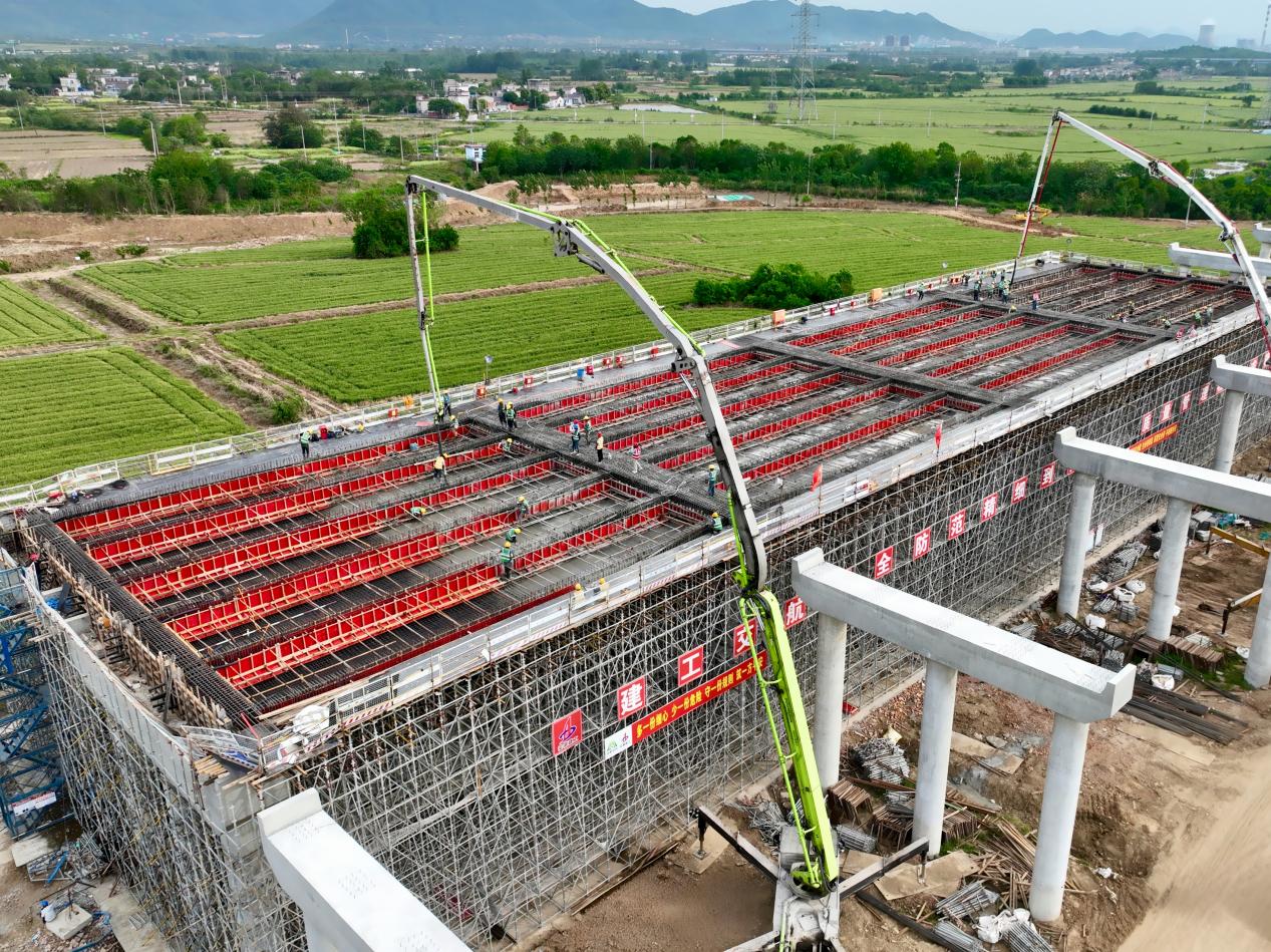 項目以黨員、青年突擊隊為攻堅主力,采用 "白 + 黑" 全天候作業模式,優化施工組織方案,強化各環節銜接效率,以滿負荷施工狀態加速推進現澆梁建設進程。全過程嚴格控制施工質量,嚴控生產安全,實現效率與質量雙提升。