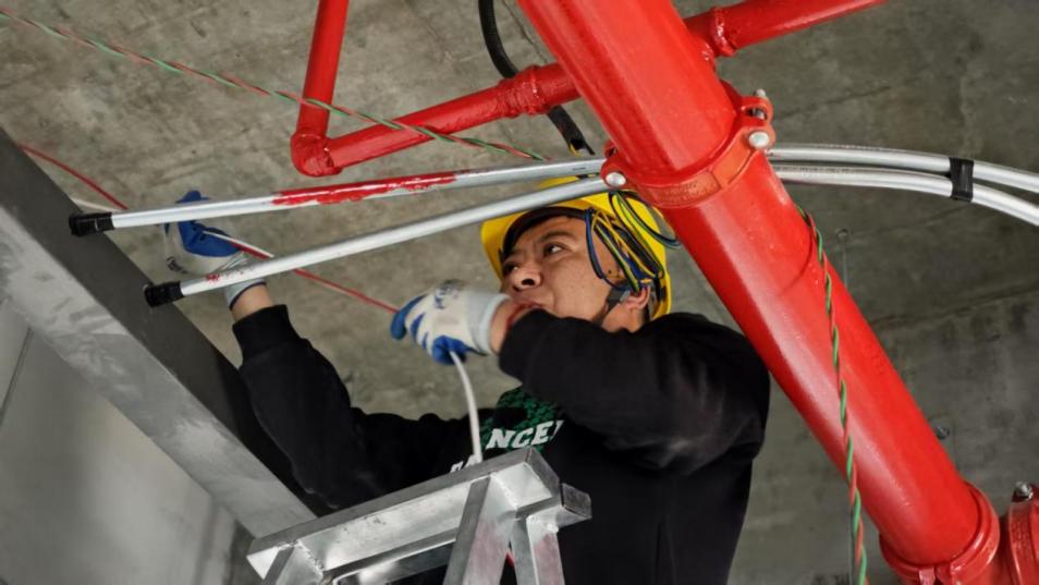 商機廠租賃住房項目施工現場,五一期間呈現出一片繁忙有序的景象。在室內,裝飾裝修正如火如荼開展。地面瓷磚鋪貼、幕墻結構搭建以及水電燃氣管線鋪設等工序緊密配合、交叉施工,各環節有條不紊推進。室外工程現場同樣熱鬧非凡,智能化室外埋管施工與水電燃氣管線鋪設同步開展。施工機械持續作業,工人師傅們熟練操作、協同合作,將各類管線精準鋪設到地下。