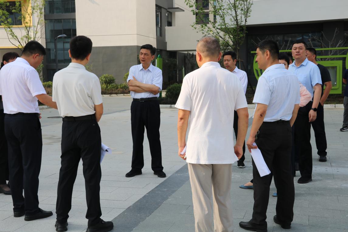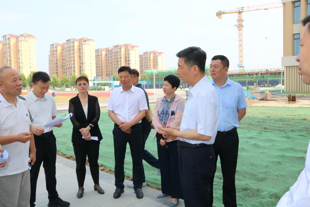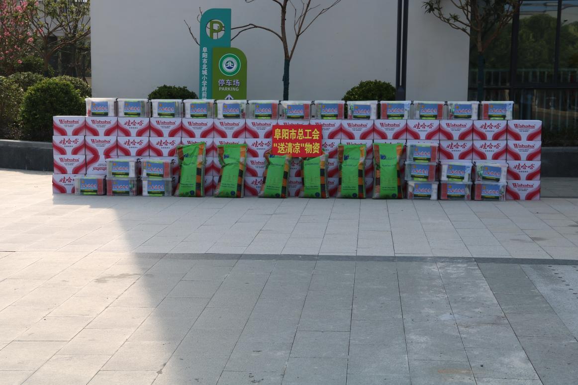 7 月 15 日上午,阜陽市委副書記、市長胡明文深入府前路小學和行知中學等項目建設現場,開展 “送清涼” 慰問活動,為炎炎烈日下辛勤勞作的一線建設者送去關懷與清涼。