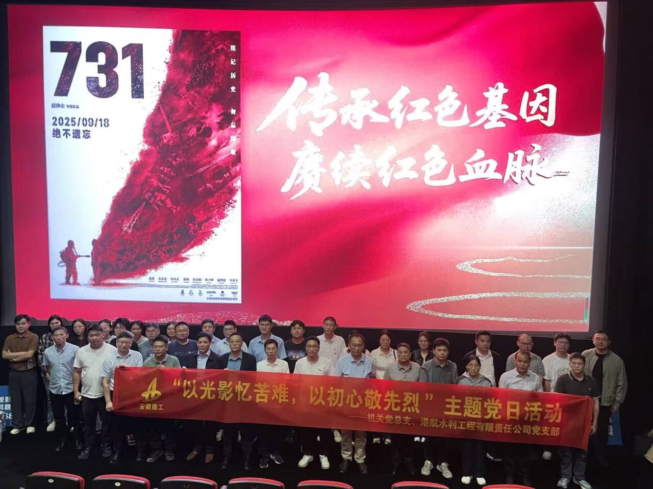 為紀念 “九一八” 事變爆發 94 周年,銘記歷史,緬懷先烈,9月18日,公司機關黨總支、港航水利公司黨總支聯合開展主題黨日活動40 余名黨員干部及職工集體觀看電影731》,以光影為鏡回望歷史,在銘記中筑牢信仰根基,讓 “九一八” 警鐘長鳴。